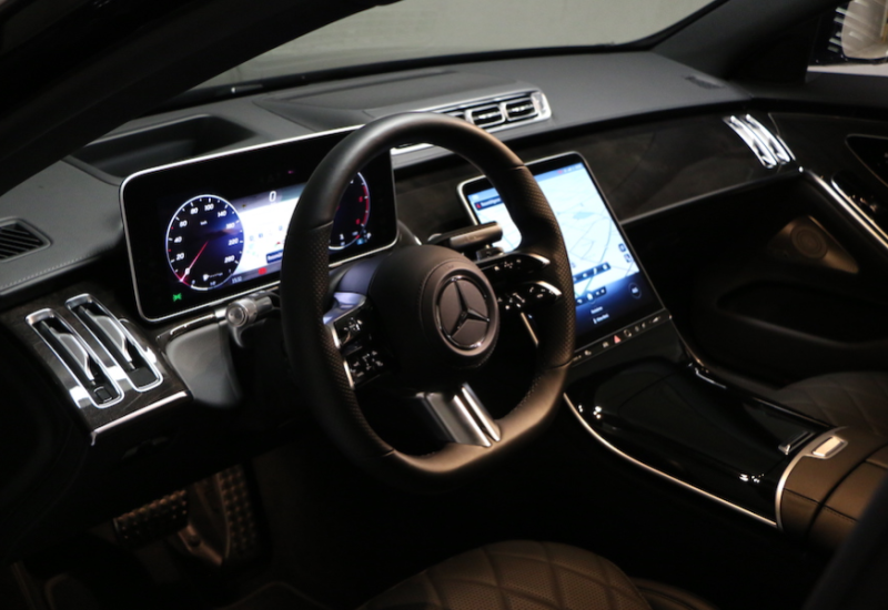 Der Innenraum versprüht Luxus pur, Hauptaugenmerk liegt klar auf dem Fond. Dort macht man es sich auf feinstem Leder gemütlich, legt sein Haupt in unfassbar kuschelige Kopfpolster und lässt sich dabei massieren. Das Leben kann echt schön sein, wenn man einen Chauffeur hat. Denn dann bekommt man auch nicht mit, welche Mercedes-untypischen Patzer man sich bei der Ergonomie rund um den Fahrer geleistet hat. Das beginnt beim Einsteigen. Die Griffmulde zum Zuziehen ist zu weit hinten angebracht. Was bei weiter geöffneter Tür zur Folge hat, dass man dort mitunter nicht mehr hinkommt. Beim Maybach-Modell und dem EQS gibt es optional elektrisch öffnende und schließende Komforttüren, bei der S-Klasse fehlt das Feature aber. Die in der Tür untergebrachte elektrische Sitzverstellung gibt es bei Mercedes seit Jahrzehnten, eigentlich ein Vorbild an Ergonomie. Auf den ersten Blick ist auch alles wie immer, bei der Bedienung stellt man aber fest, dass die einst beweglichen Symbole nun fix sind und per Touch bedient werden, was mehr schlecht als recht funktioniert. Die Touch-Seuche – die es auch bei anderen Herstellern immer öfter gibt – hat nun ebenfalls beim Lenkrad Einzug gehalten. Was zur Folge hat, dass etwa die Fläche für den Tempomaten zwei bis drei Mal gedrückt werden muss, ehe sie reagiert. Dass nun auch die Temperaturregelung in den Touchscreen gewandert ist, ist ebenfalls alles andere als eine Verbesserung der Ergonomie.