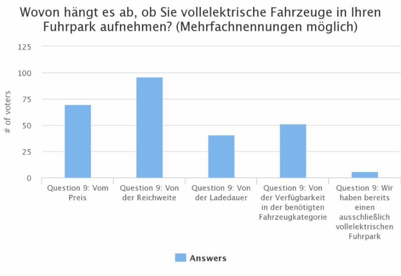 - Wovon hängt es ab, ob Sie vollelektrische Fahrzeuge in Ihren Fuhrpark aufnehmen? (Mehrfachnennungen möglich)