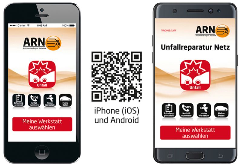 • Kostenlose Unfall-App mit Werkstattfinder und Unfallbericht