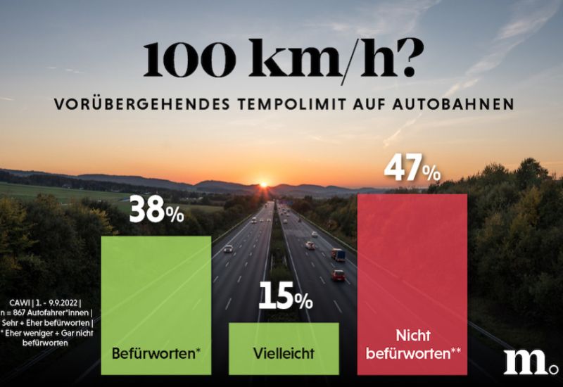 Doch wie sieht es mit der Akzeptanz unter den Autofahrern aus? Dieser Frage ging das Marktforschungsinstitut marketagent nach und kam zu eindeutigen Ergebnissen: So sind 71 Prozent der Befragten mit den aktuellen Tempolimits zufrieden. Nur 38 Prozent würden ein temporäres Tempolimit befürworten, ein permanentes gar nur 24. Interessantes Detail hierbei: Vor allem Vielfahrer und FPÖ-Wähler lehnen laut marketagent diese Maßnahme vor allem ab.