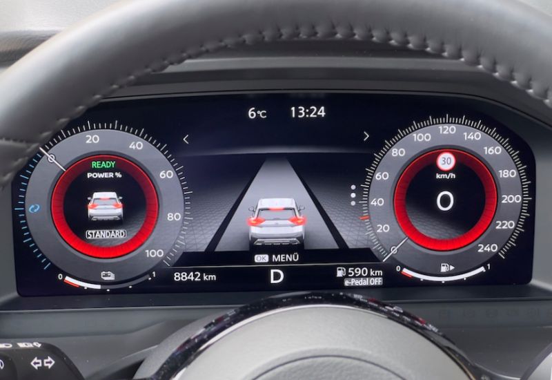 So oder so hat sich Nissan beim Antrieb wirklich etwas überlegt: Es befindet sich ein Dreizylinder-Verbrenner mit variabler Verdichtung unter der vorderen Haube, der entweder direkt den 150-kW-E-Motor antreibt oder den nur 2,1 kWh großen Pufferakku speist, nie aber direkt auf die Antriebsräder wirkt. In unserem Falle - beim Allrad -sitzt an der Hinterachse auch noch ein E-Motor mit 100 kW und das Bemerkenswerteste an diesem System ist definitiv, dass man fast nichts bemerkt. Man muss schon genauer hinhören, um etwas vom Kolbenhubaggregat mitzubekommen, so dezent und gut gedämmt arbeitet es. Und es ist natürlich ein angenehmes Gefühl, zu wissen, dass man trotz eines geringen Akkustands noch locker 500 Kilometer weit kommt. Sicher, wir reden hier von keinem echten E-Auto, aber dennoch lässt sich das seidenweiche Fahrgefühl eines Stromers genießen. Wer es gemächlich angeht, schafft knapp über fünf Liter, im gemischten Normalbetrieb sind es aber auch schon einmal sieben bis acht Liter Super im Schnitt.