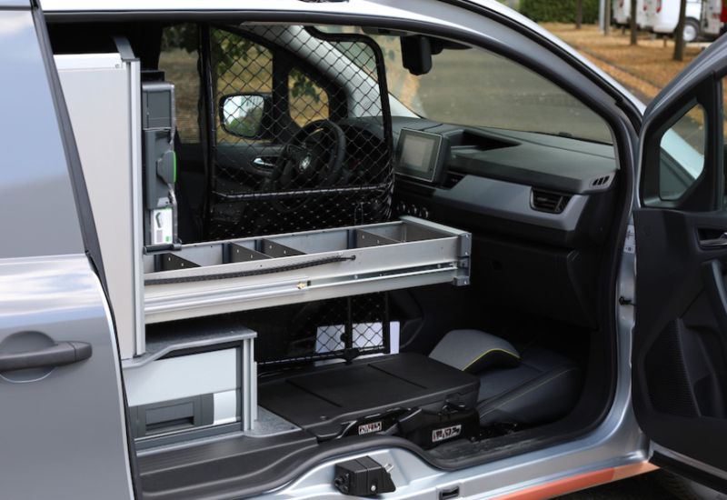 Die Möglichkeiten, die sich aus dem Mobilbox-System ergeben, sind vielfältig. Natürlich kann man somit auch normale Pkw schnell zu einem vorübergehenden Servicefahrzeug ummodeln. Aber auch für Transporter ergibt diese bott-Technik Sinn, wenn es Einsätze gibt, bei denen einfach das maximale Ladevolumen benötigt wird. Und Stichwort Variabilität: Die Mobilbox gibt es in zwei verschiedenen Grundhöhen: 400 und 700 Millimeter. Je nach Platz und Einsatzzweck gibt es noch weitere Anpassungsmöglichkeiten. Während sich die Oberseite in einem Transporter etwa als gepolsterte Sitzbank anbietet, ist für den Einsatz in einem Pkw eine Wanne mit C-Lash-Zurrsystem empfehlenswert. Das Innenleben kann zum Beispiel mit Schubladen, in denen sich Zwischenwände oder Behälter für Kleinteile befinden, bestückt werden, genauso wie mit Aufnahmen für Servicekoffer oder mit Ablagen für größere Werkzeuge und Güter – und natürlich mit bottBoxen, die ebenso wie die Mobilbox an sich auch herausnehmbar sind.