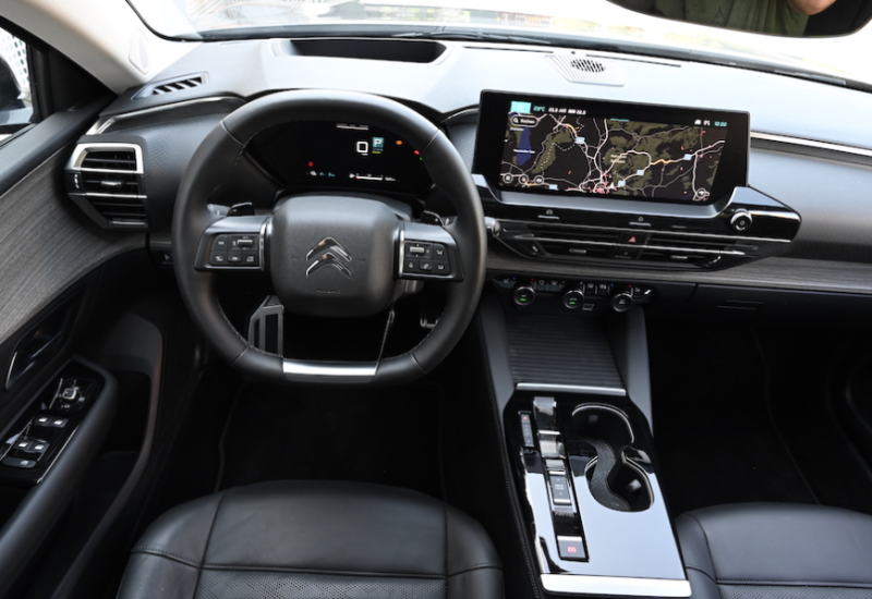 Sind die Eigenständigkeiten des Hybridsystems verinnerlicht, darf der Connaisseur dazu übergehen, den Reisekomfort zu genießen. Zwar ist von der Hydropneumatik der guten alten Zeit keine Rede mehr, dennoch federt die Limousine mit Oberklasse-Ambitionen durchaus sänftenartig. Keine Angst jedoch: Auch bei rascherer Kurvenfahrt kommt nie Beklemmung auf, das Fahrwerk flößt bei allem Komfort ausreichend Vertrauen ein. Motorisch ist der Wagen ebenfalls allem gewachsen, was ihm der frankophile Pilot abverlangen dürfte. Antriebsbedingt ist der Realverbrauch von Fossilien eine recht beliebig einstellbare Größe. Im Interieur ist übrigens rasch Schluss mit der Eigenständigkeit, man findet allerorten die Bedienelemente aus dem Stellantis-Konzern. Diese sind allerdings durchaus zeitgemäß und bieten einen guten Mix aus Display- und Knopferlbedienung.