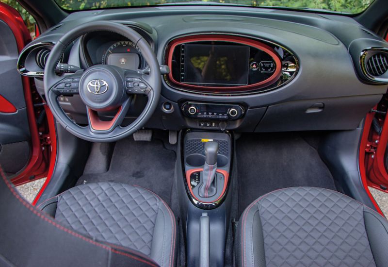 Auch auf längeren Strecken und Autobahnetappen macht der Aygo X eine gute Figur. Das Fahrwerk bietet ausreichend Straffheit bei gutem Komfort, mit dem E-Stofffaltdach gibt es Cabrio-Feeling auf Knopfdruck. Nur der Geräuschpegel jenseits von Landstraßengeschwindigkeiten zwingt beim Telefonieren mittels Freisprecheinrichtung dann doch teilweise zum Reduzieren der Geschwindigkeit. Der Verbrauch spricht ebenfalls für sich: In unserem Test begnügte sich der Aygo X mit 5,1 Liter auf 100 Kilometer.