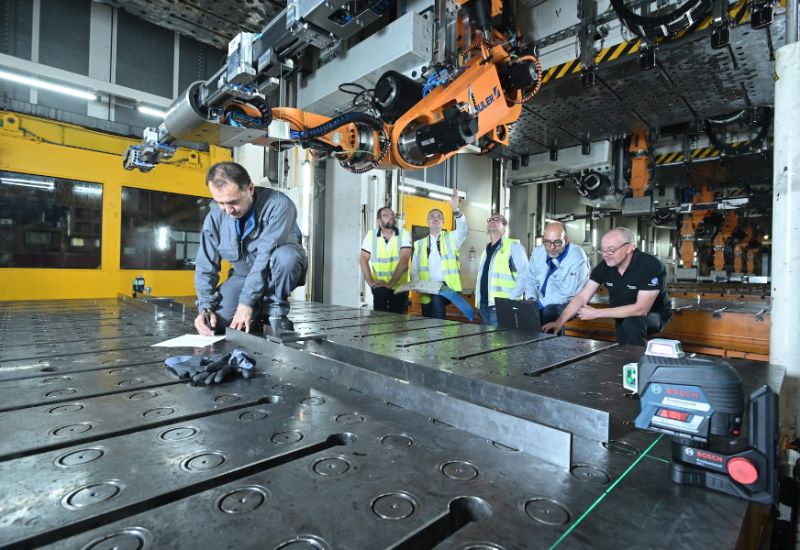 Im Presswerk wiederum wurden Arbeiten an einer der größten Pressenstraße im Volkswagen Konzern vorgenommen, der Servo-Presslinie PXL (2.000 Quadratmeter Grundfläche, 3.300 Tonnen Eigengewicht): In einer der sechs integrierten Einzelpressen wurden Greifarm und das sogenannte Tischkissen, auf dem die bis zu 65 Tonnen schweren Einzelwerkzeuge aufliegen, ausgetauscht. Ein neues Auslaufband am Ende der Presse ist nun in der Höhe und Neigung anpassbar, was ein verbessertes Herausheben der Pressteile für die Beschäftigten ermöglicht.