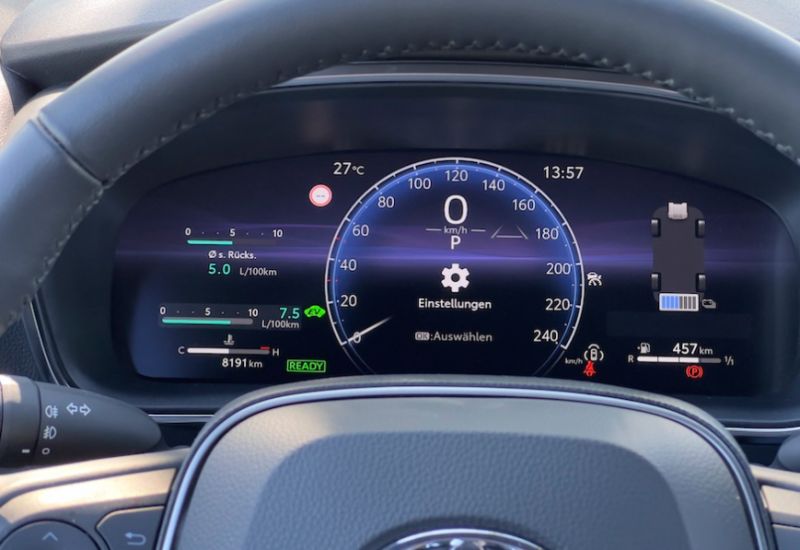 Nicht viele, aber relevante Änderungen, ein Rezept, das man auch sonst anwandte: Dank neuer Frontkamera mit deutlich größerem Blickfeld konnten die Reaktionszeiten von nahezu allen Assistenten deutlich verkürzt werden, was vor allem bei der Verkehrszeichenerkennung und dem adaptiven Tempomaten durchaus wünschenswert ist und im Alltag spürbar souveränere Manöver des Systems ermöglicht. Und Features wie das 12,3-Zoll-Digitalcockpit oder der 10,5-Zoll-Touchscreen für das Infotainmentsystem sind typische Merkmale der aktuellen Toyota-Generation, genauso übrigens wie die Tatsache, dass Apple CarPlay zwar drahtlos funktioniert, nicht aber Android Auto.