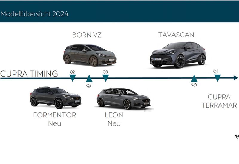 Bei Cupra wird 2024 ein Modellfeuerwerk gezündet, neben Facelifts von Formentor und Leon sowie einem sportlichen Born VZ kommen Ende des Jahres das vollelektrische SUV Tavascan – für den bereits über 130 Vorbestellungen, großteils von Unternehmen, vorliegen – sowie der Terramar, der als PHEV und Benziner angeboten wird. Weiters wird Cupra 2024 Stück für Stück auf ein Agenturmodell im Handel umstellen, beim Ateca geht das mit einer Preisreduktion von elf Prozent einher.