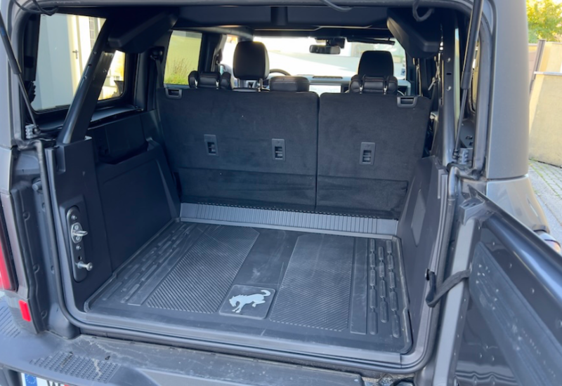 Nun ist der Bronco offiziell zu haben und ganz normal beim Ford-Händler zu ordern. Und dennoch wird er eine Seltenheit bleiben, was weniger an seiner rustikalen Art, sondern vielmehr am Preis liegen wird, dazu später mehr. Stichwort rustikal. Wie viele Autos kennen Sie, bei denen man nicht nur das Dach abnehmen, sondern auch die Türen ausbauen kann! Wozu man das braucht? Nun, wären Sie cool, hätten Sie das jetzt nicht gefragt … Der Bronco ist sicher mehr Poser als Daily Driver, zum einen ist die Parkplatzsuche nicht so wirklich sein Ding, zum anderen läuft man Gefahr, dass sich jemand festklebt am bulligen Ami, mit dem Durchschnittsverbrauch von 15 Litern oder mehr. Sein 335 PS starker V6-Benziner hat eben Durst und was einen durchschnittlichen Europäer mittlerweile schockiert, ist für den ebensolchen Ami normal bis fast schon sparsam. Das Fahrverhalten ist ebenfalls auf der hemdsärmeligen Seite, zwar geht die Fuhre ordentlich vorwärts (7,2 Sekunden auf 100 km/h), Kurven sind aber mit Vorsicht zu genießen, im 2WD-Modus wird das Heck schnell leicht.