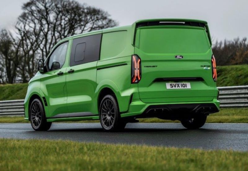 Die Karosserie-Modifikationen setzen bei einer aerodynamisch optimierten Frontschürze mit integriertem Spoiler an und beziehen auch sportliche Seitenschweller mit ein. Im neu gestalteten Heckbereich zieht der hintere Stoßfänger mit integriertem Diffusor-Element die Aufmerksamkeit auf sich. Der aus dem Motorsport abgeleitete Dachspoiler optimiert dank aufwändiger Computer-Simulationen den Luftfluss. Unter den leicht ausgestellten Radläufen finden gewichtsoptimierte 19-Zoll-Leichtmetallfelgen im exklusiven Anthrazit-Design Platz, die pro Stück die ungefederten Massen um ein Kilogramm reduzieren. Gegenüber dem Transit Custom Sport fallen sie nochmals breiter aus und erweitern hierdurch die Spur sowohl an der Vorder- als auch an der Hinterachse um mehr als 50 Millimeter. Von Beginn an hält Ford für den Transit Custom MS-RT eine markante Farbpalette bereit, darunter auch das lebendige Yellow Green und das typische MS-RT Blau. Hochglänzend schwarz lackierte Außenspiegelgehäuse und Türgriffe gehören ebenso zur Serienausstattung wie die auffallend blauen Bremssättel. Im Interieur zieht das Sportlenkrad mit seiner blauen 12-Uhr-Markierung die Blicke auf sich. Es trägt ebenso blaue Ziernähte wie die neu entwickelten, besonders ergonomischen und komfortablen Frontsitze. Ihre Seitenwangen bieten mit breiten Polstern zusätzliche Unterstützung für den Rücken. In puncto Antrieb sticht vor allem der E-Transit Custom MS-RT hervor: Sein Elektromotor ist mit 210 kW (285 PS) so stark wie noch kein anderes Aggregat in dieser Nutzfahrzeug-Baureihe zuvor. Als Dieselvariante steht ein 2,0 Liter großer EcoBlue-Vierzylinder-Motor mit 150 oder 170 PS zur Verfügung.