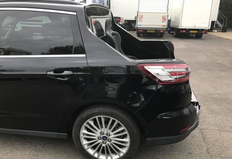 Wir alle kennen die Bilder und Filmchen von neuen Modellen, die durch die Gazetten geistern, doch wie entstehen die eigentlich? Bei Ford hat man sich diese Frage vor mittlerweile 20 Jahren gestellt und seither eine Reihe von Fahrzeugen speziell umgebaut, die für Presseveranstaltungen, Präsentationen und Dreharbeiten eingesetzt werden. Den Anfang machte 2004 ein Mondeo und nach diversen Typen langte man nun bei einem S-Max an, wobei sie alle ein Detail teilen: den verkehrt montierten Einzelsitz auf dem entblößten Heck. Anfangs gestaltete man diese Umbauten noch selber, erzählte man uns, aber mittlerweile übernimmt das eine spezielle Firma in England. Die Arbeiten sind schließlich durchaus komplex, wobei man sicherheitshalber von Beginn an die Behörden einweiht, um bei der Zulassung keine Probleme zu bekommen. Wobei Ford zugeben muss, dass es natürlich hilft, Hersteller zu sein. Ähnlich vorbildlich geht man bei den Fahrern vor. Mittlerweile sind drei für das Führen dieses Dreisitzers berechtigt, die allesamt ein spezielles Training durchlaufen haben. Schließlich geht es nicht nur um den Kameramann im Fond, sondern auch um das hinterherfahrende Fahrzeug. Nur bei einer Frage war das auskunftsfreudige Event Team von Ford ziemlich einsilbig. Ob man so einen Ford denn kaufen könnte? „No!“